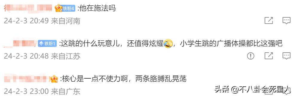 有網友直接嘲諷姜濤跳舞像“跳大神”,也有說他跳得比廣播體操還差。