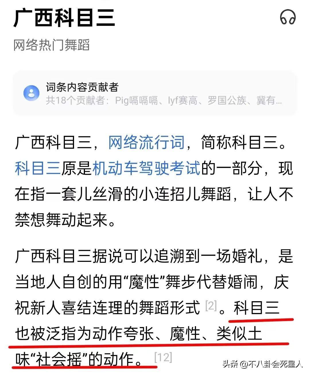 簡單介紹一下科目三,這是網絡熱門舞蹈,動作誇張、手臂搖晃、雙腿扭曲,類似“社會搖”。
