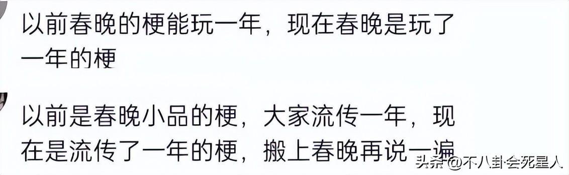 如今,卻反過來了,春晚上玩的梗,是網絡上的熱梗,令人感慨萬千,不少觀衆表示還是以前的春晚更有意思。