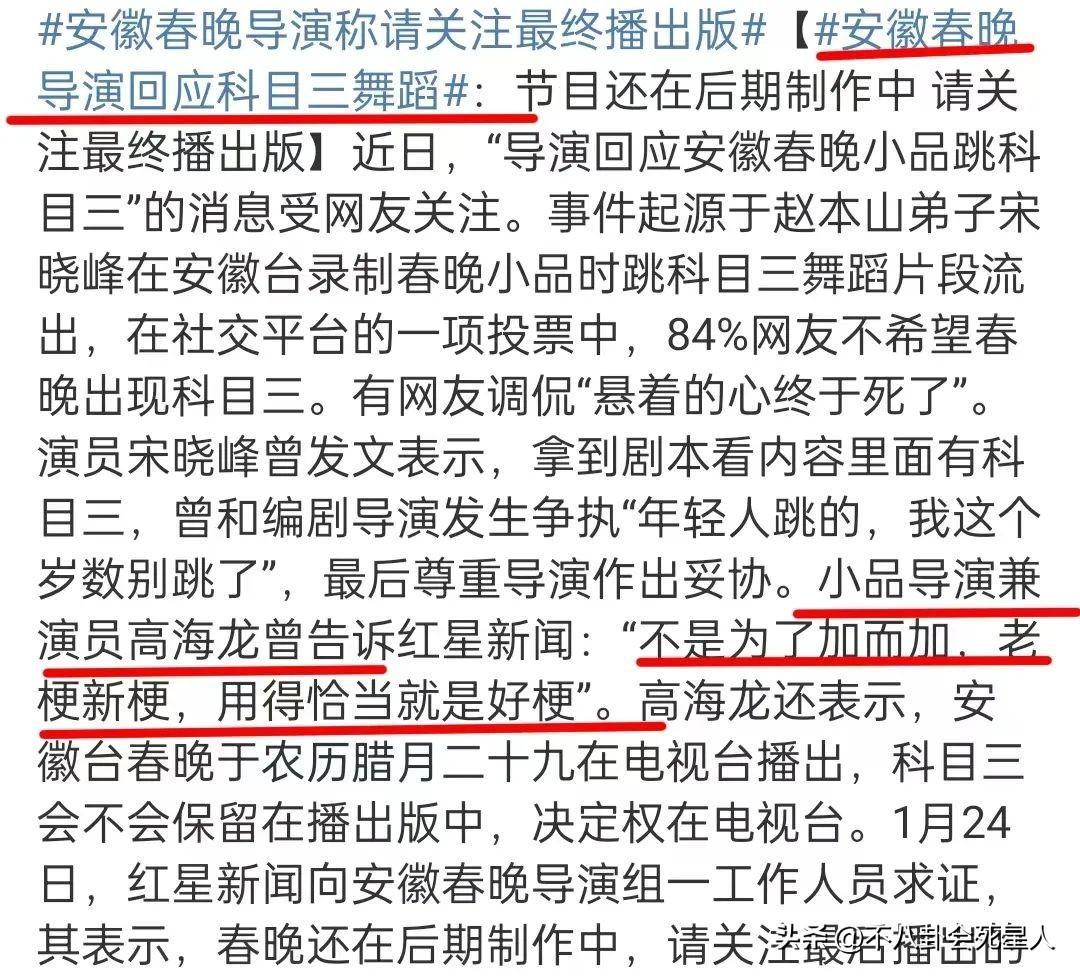 當時,看到春晚彩排有科目三,大衆紛紛抵制,結果小品導演兼演員高海龍回應爭議,“不是爲了加而加,老梗新梗,用得恰當就是好梗”。
