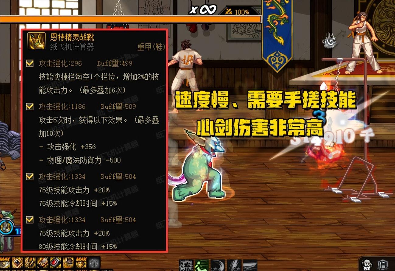 因爲“恩特鞋子”有2條lv75+20%技攻的詞條,導致了心劍這一個技能下降幅度都在40%左右;