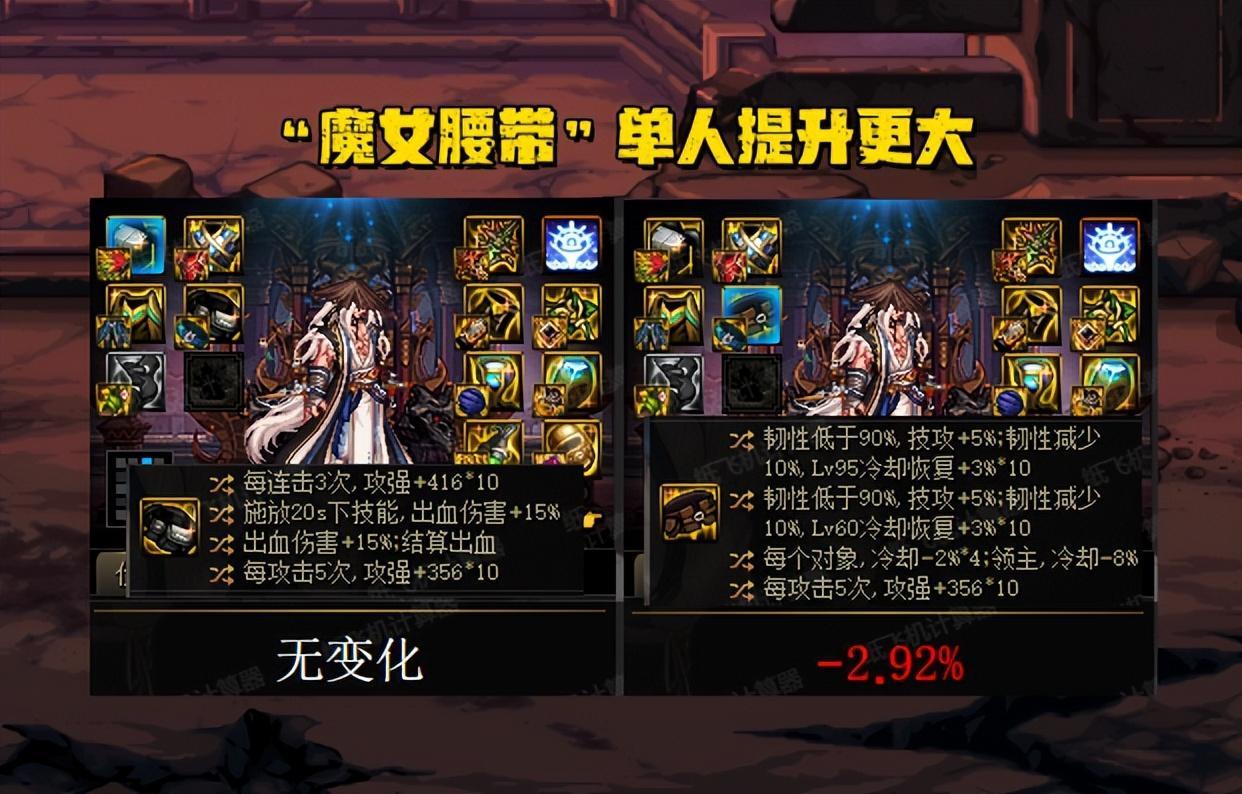 而且,這還是建立在沒選“單人10技攻”的基礎上,不然魔女腰帶實際提升還會更大,可以說單刷玩家必選魔女腰帶!