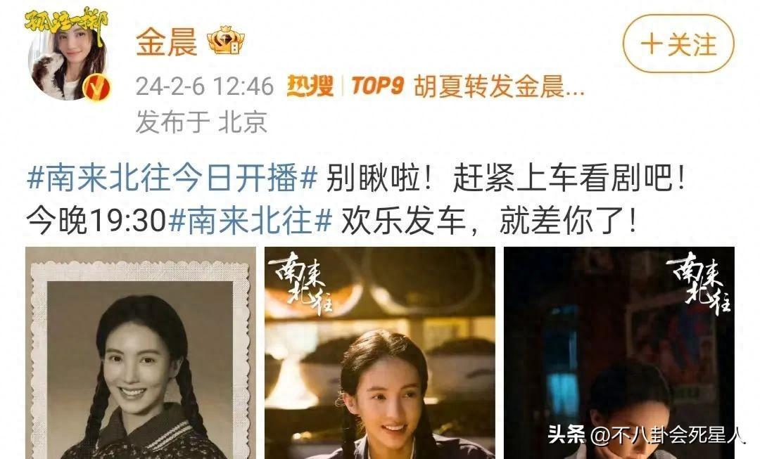 2月6日晚,金晨主演的新劇《南來北往》開播,她曬照發文宣傳。
