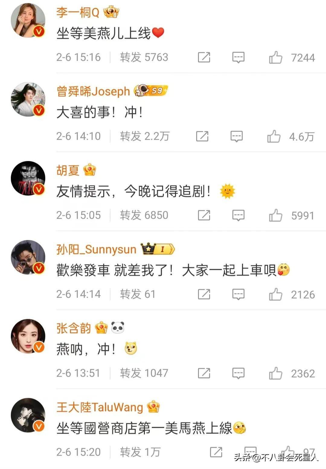金晨發文後,李一桐、曾舜晞、孫陽、張含韻、王大陸等明星好友轉發支持她的新劇。