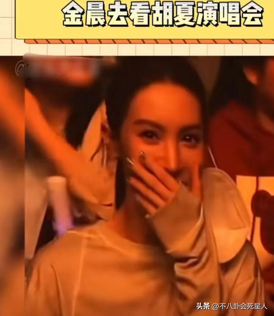 另外,金晨還去了胡夏演唱會,看到金晨的到來,胡夏興奮地拿手機拍照,金晨則是害羞地捂臉笑。