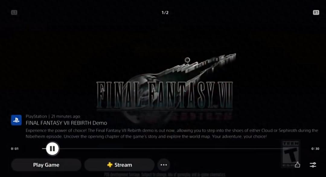 在2月1日舉辦的State of Play發佈會中,索尼宣佈將於2月7日爲即將發售的《最終幻想7重生》單獨舉辦專場發佈會,當時很多玩家猜測本作是否會像前作那樣在發佈會結束後立刻開放Demo下載,沒想到就在今天,PlayStation商店頁面當了回內鬼,提前泄露了《最終幻想7重生》的Demo預告片。