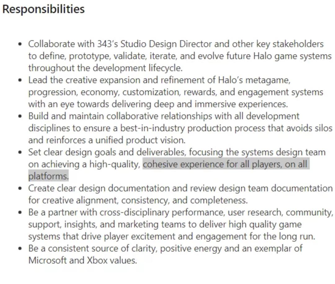 而近日343 Industries放出的首席遊戲系統設計師職位的招聘信息或許也間接作證了這些爆料和傳聞,343在該職位的招聘信息中明確提到了“全平臺”“所有玩家”等相關字樣,很難不讓人浮想聯翩。
