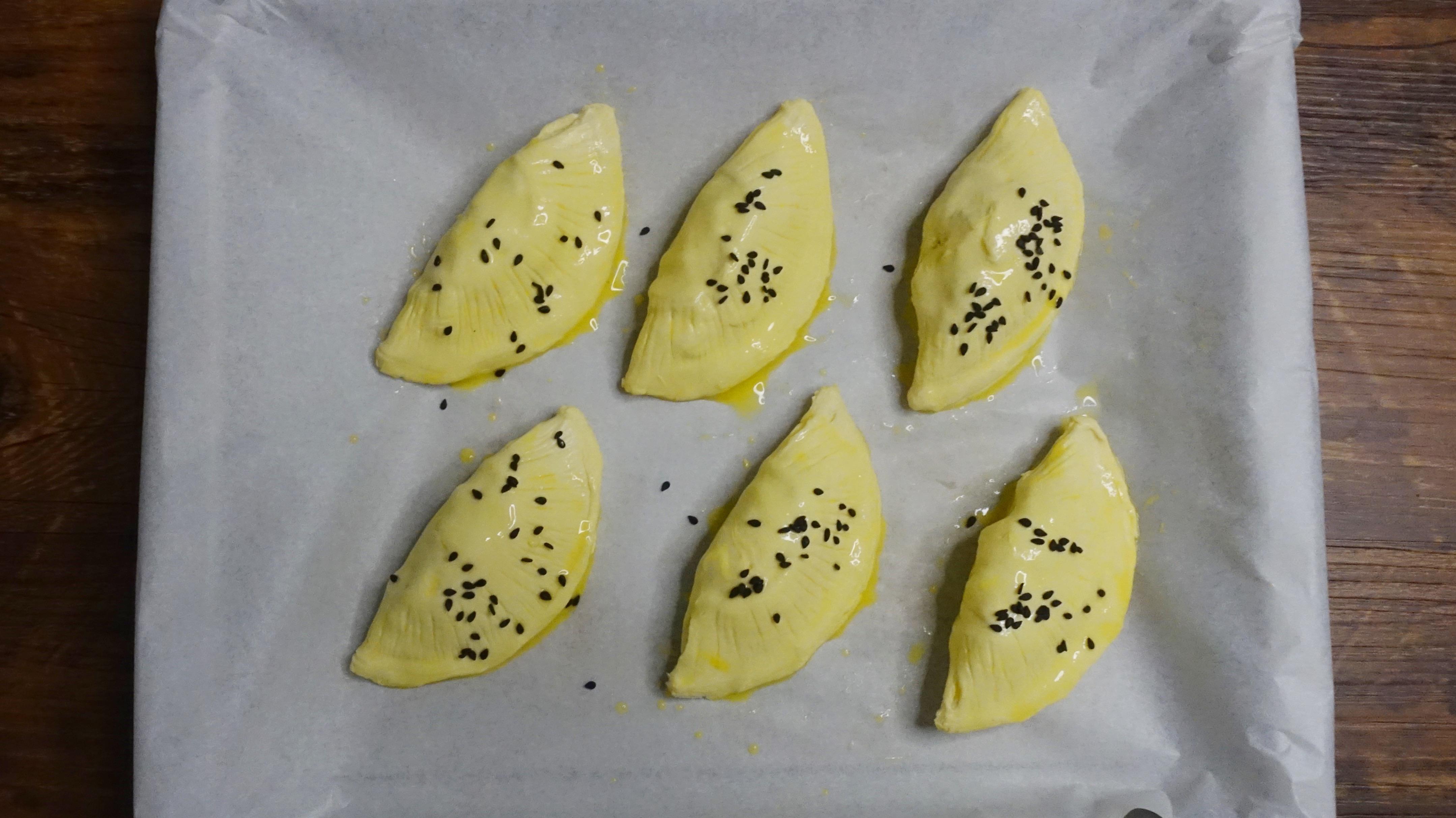 5、兩面刷上蛋液,撒些黑芝麻,放入烤箱或空氣炸鍋中;