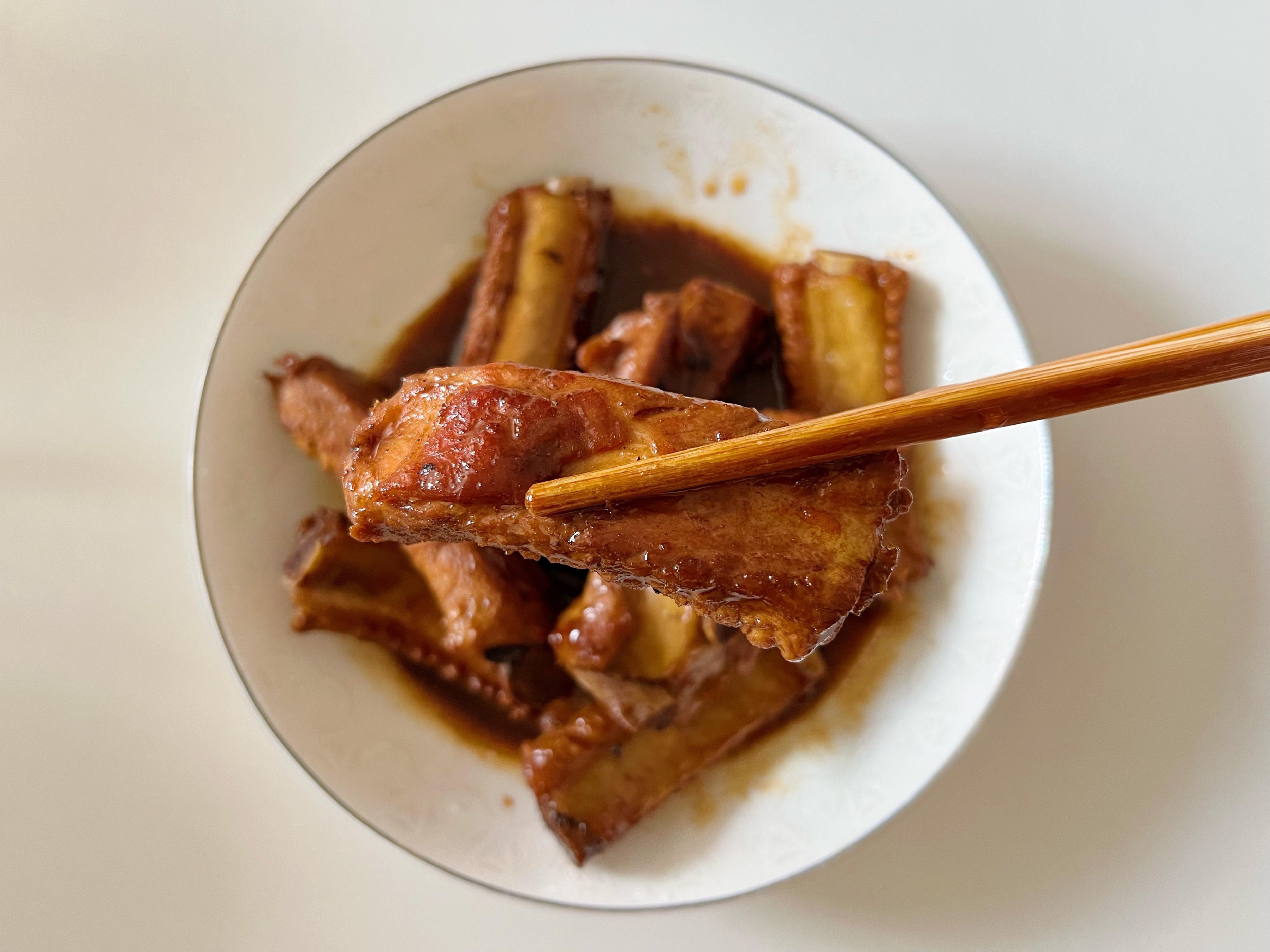 除夕喫年夜飯,通常會出現一些紅燒類菜餚,因爲色澤誘人,色調喜慶,還有鴻運當頭的意思,非常貼合除夕的節日內涵。紅燒肉喫多了,不妨安排一道紅燒排骨,排骨外觀是一節一節的,還多了一層“節節高升”的寓意。