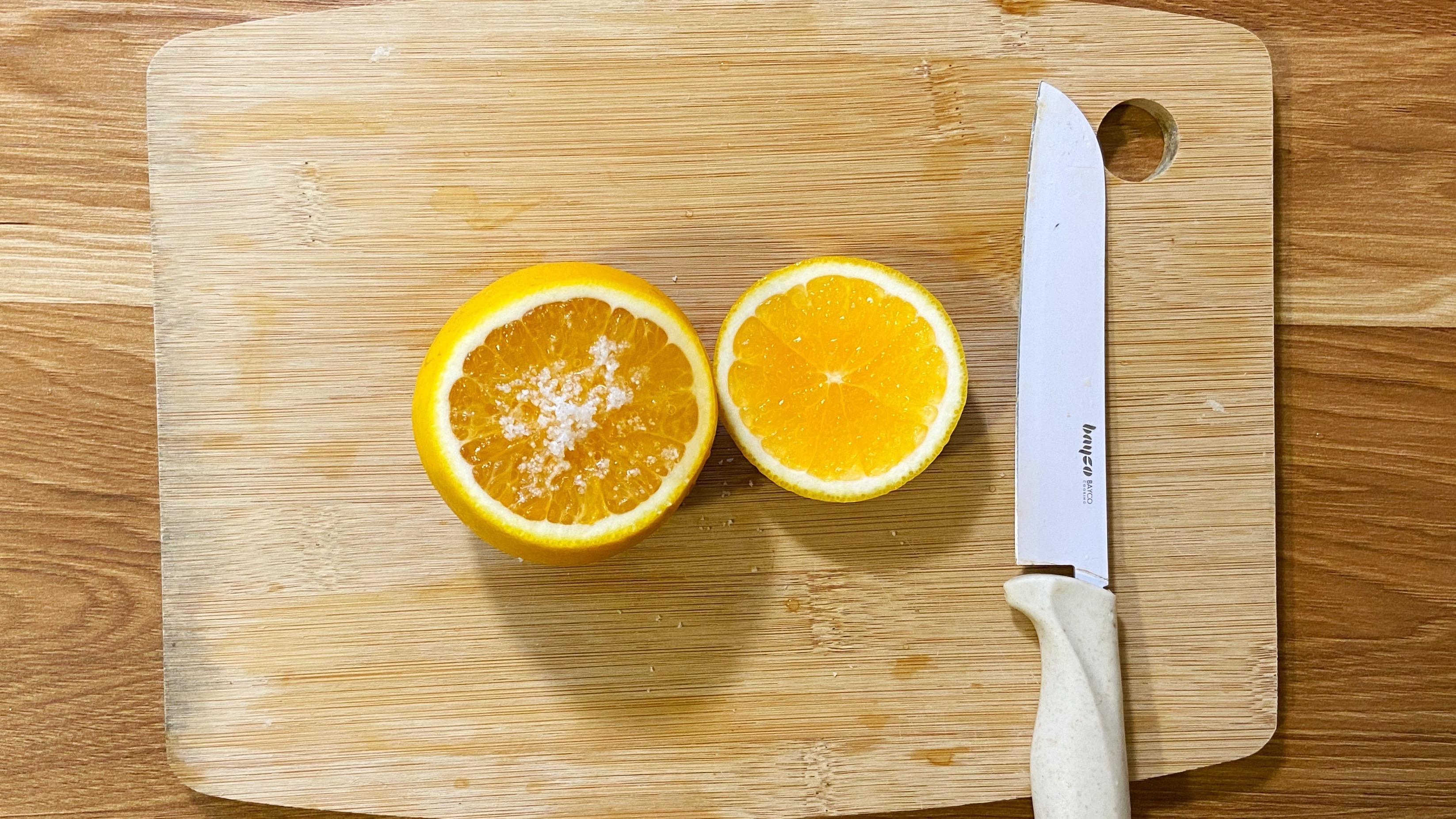 1、在橙子的表皮上倒一些食鹽,多搓洗幾遍,將橙子洗乾淨;