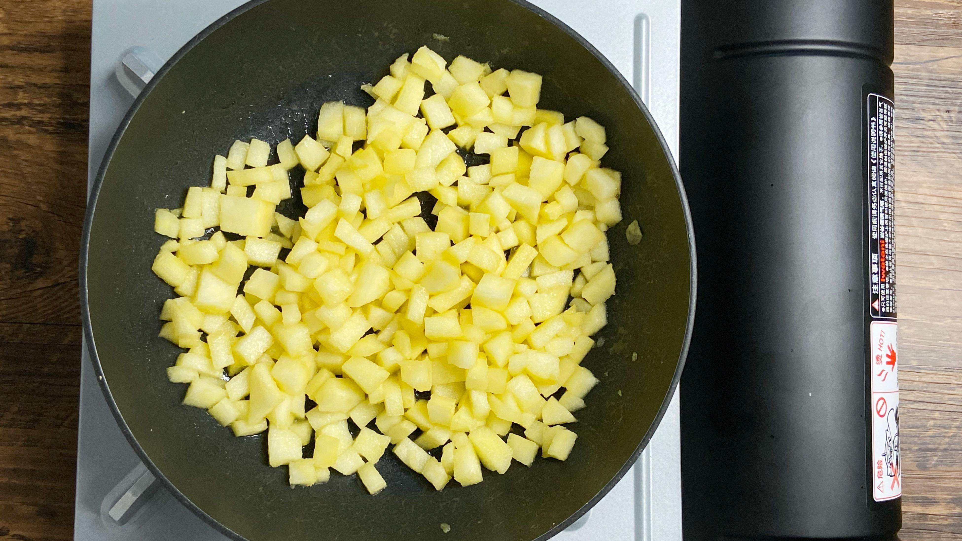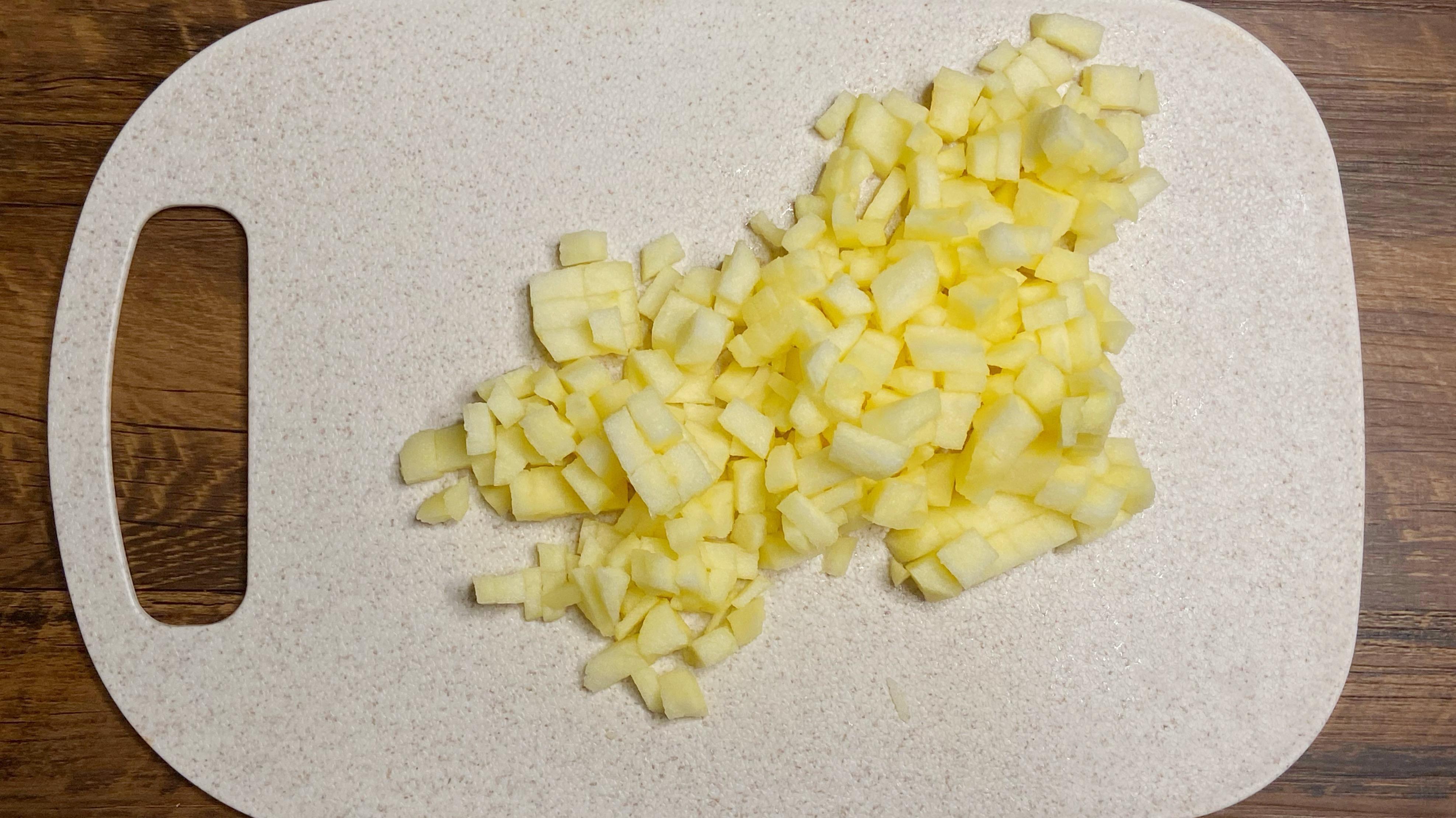 1、蘋果洗淨,去皮、去核,切成小丁狀;