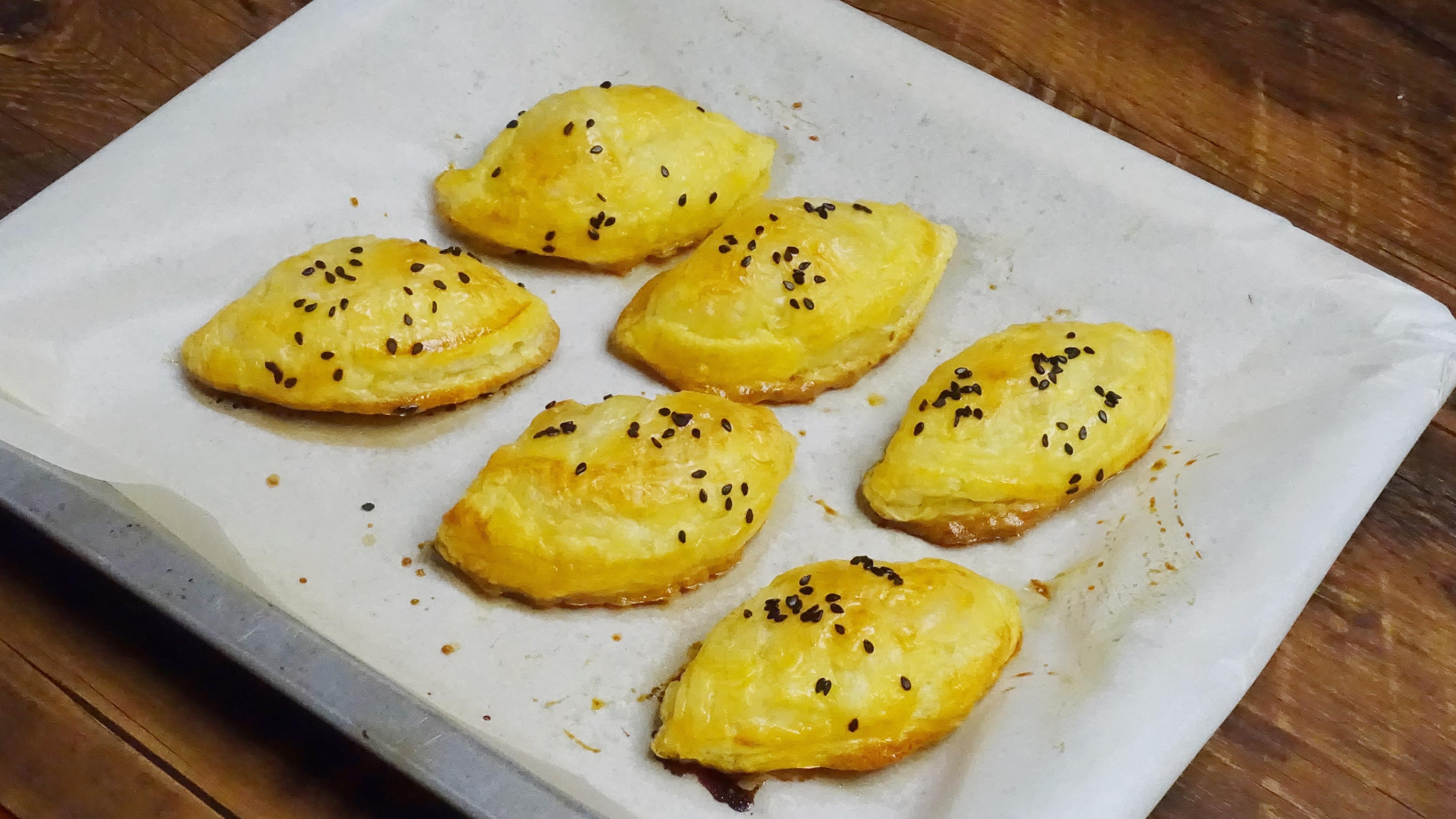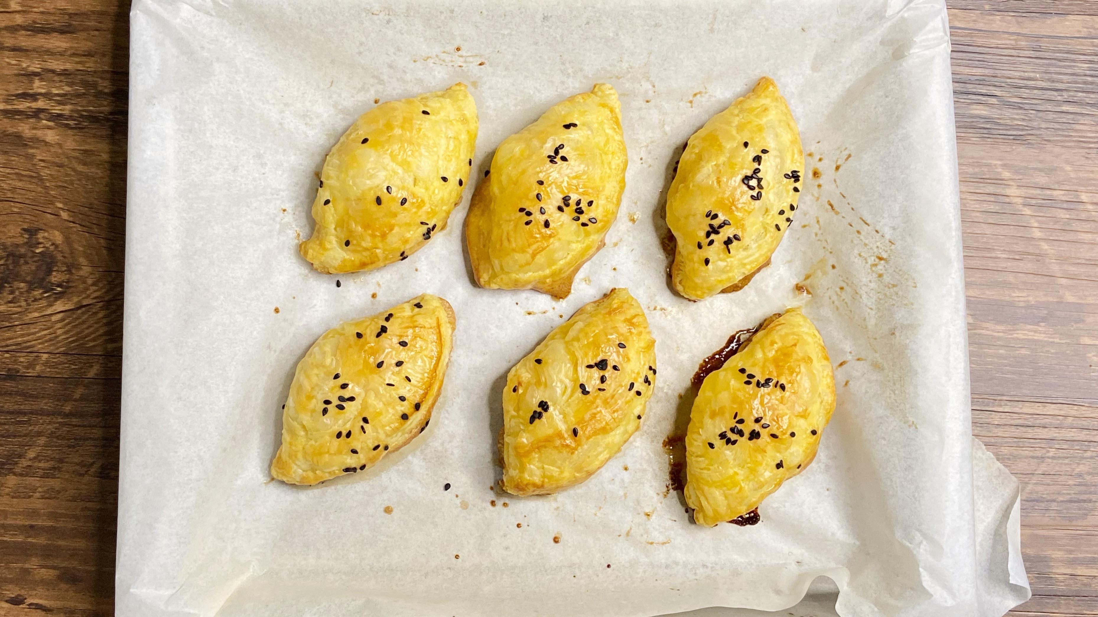 6、180度烤20分鐘,過程中換次面即可,烤好的蘋果酥,可以作爲除夕守歲的甜點,超級好喫。