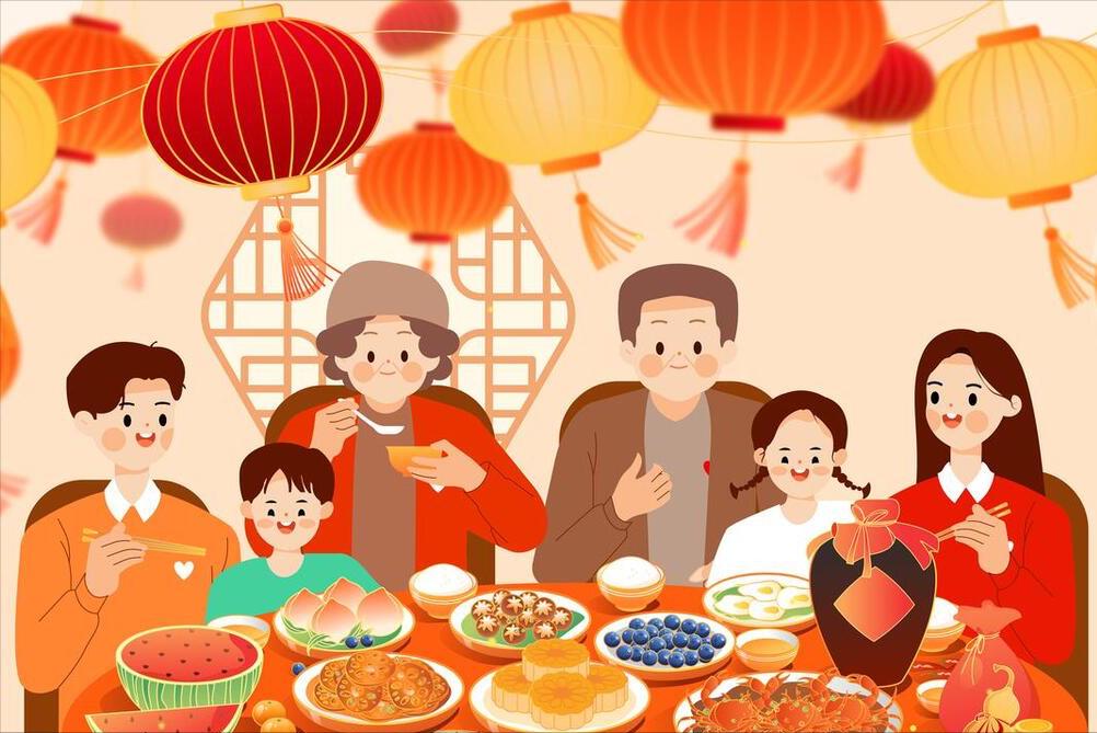 喫團圓飯時,有2個地方需要注意,儘量不要犯了忌諱:一是儘量安排一些寓意吉祥的菜餚,比如紅燒肉(鴻運當頭)、雞肉(大吉大利)、魚肉(年年有餘);二是數量上儘量爲好聽的數字,比如6道菜寓意六六大順、8道菜寓意八方來財、10道菜寓意十全十美。