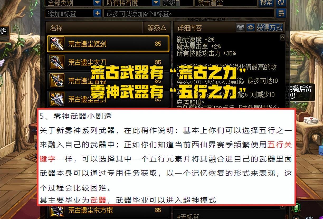 DNF:“荒古2.0”即將登場!神界最強武器預熱,融合五行之力