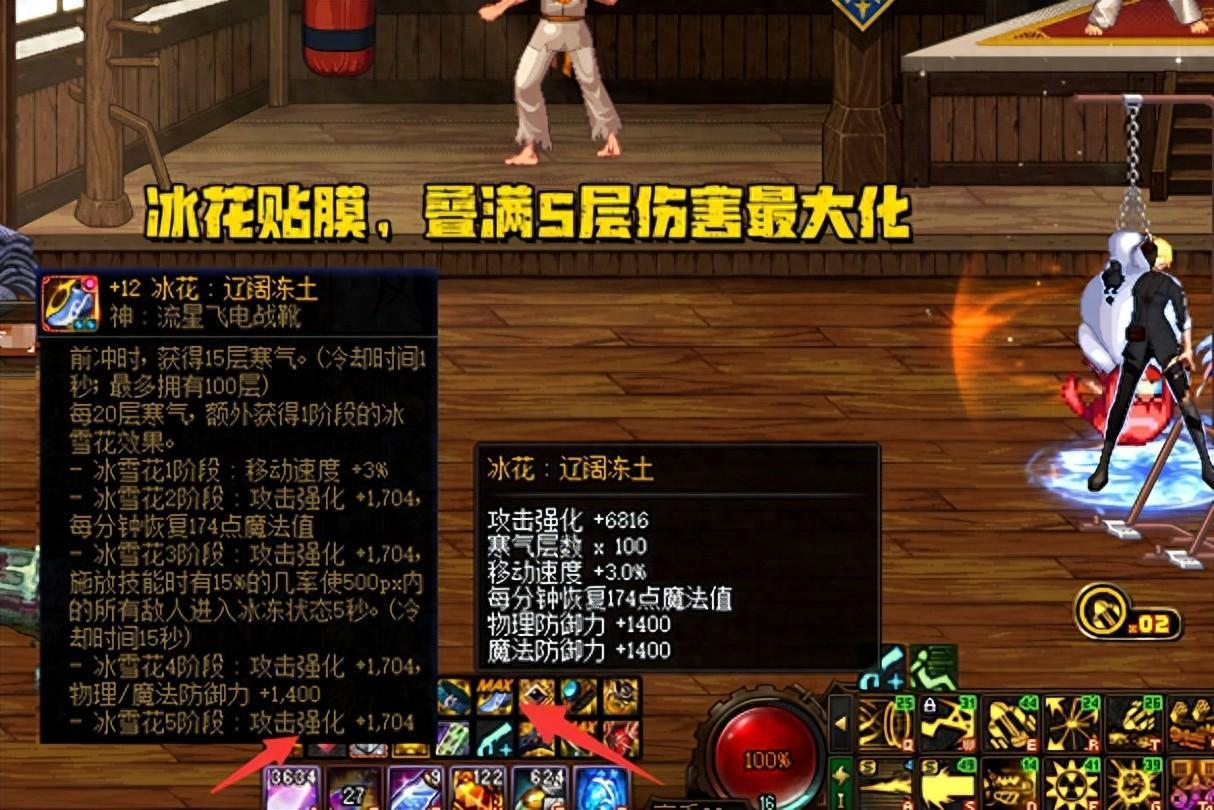 所以在輸出之前,我們需要儘量把冰雪花疊滿5層,大家可以關注一下左下角的裝備圖標,當冰花貼膜圖標上出現「MAX」最大值的時候,就可以正常輸出了。