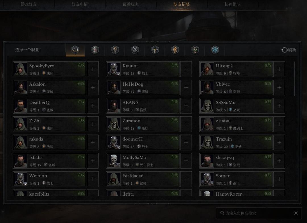 《源自地牢》則設計了完備的社交和匹配系統,你可以在招募界面中挑選大廳中的玩家發出邀請,或是乾脆使用快速組隊功能去匹配特定職業和等級的玩家——就像《魔獸世界》或者FF14的“地下城查找器”那樣。