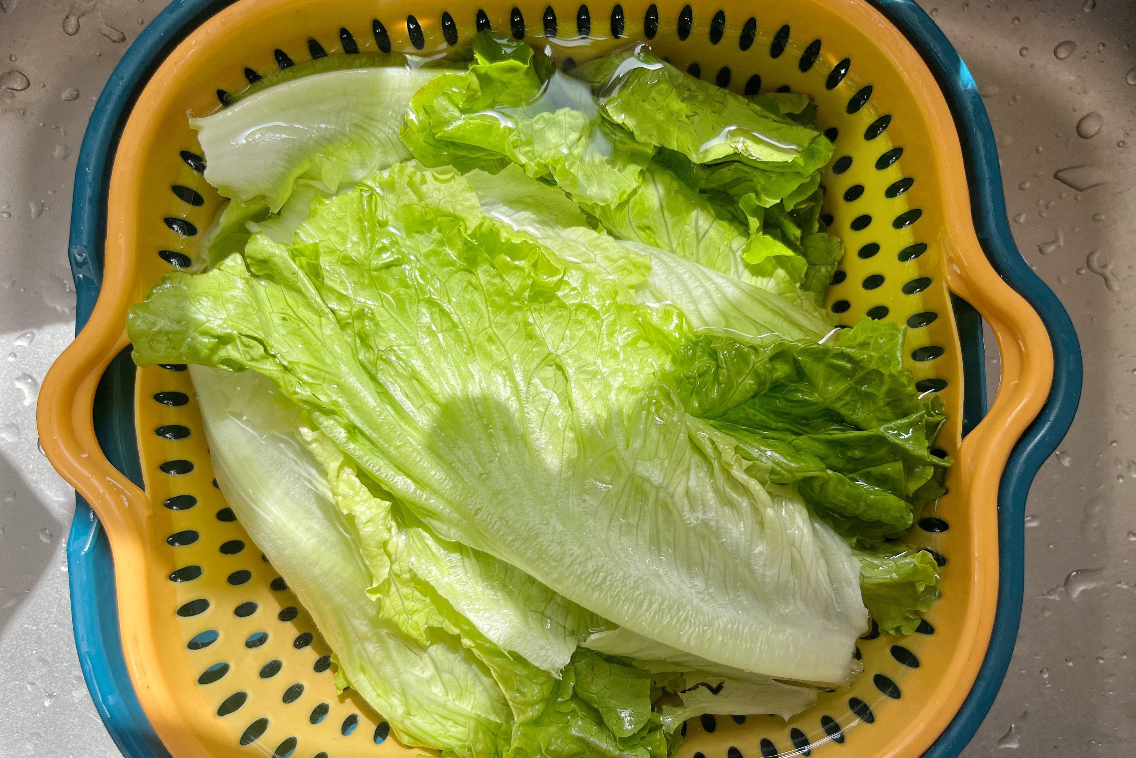 1、將生菜一片、 一片掰開,將每片菜葉清洗乾淨,控幹水分;
