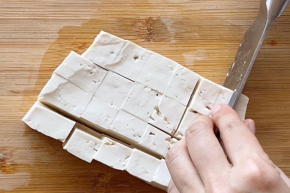 1、準備1塊老豆腐,洗淨後,切成方塊狀;