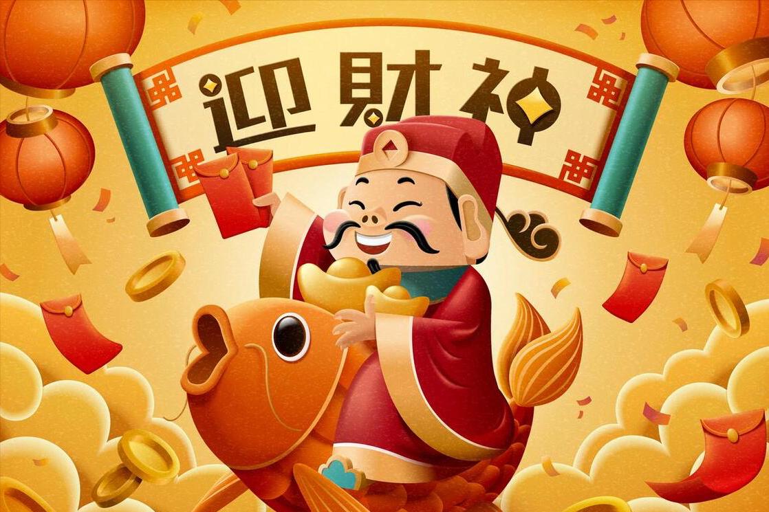 財神爺並不是指特定的一個人,根據其在神話傳說中的特點不同,還有不一樣的名號,比如以趙公明、關公等爲代表的武財神,以比干、范蠡爲代表的文財神等。相傳財神爺會在大年初四降臨人間,一般從下午開始,人們就要準備接財神了,一直持續到大年初五的凌晨。因此很多生意人也會選擇在這兩天開市,希望財神能照顧自己的生意,開市大吉。