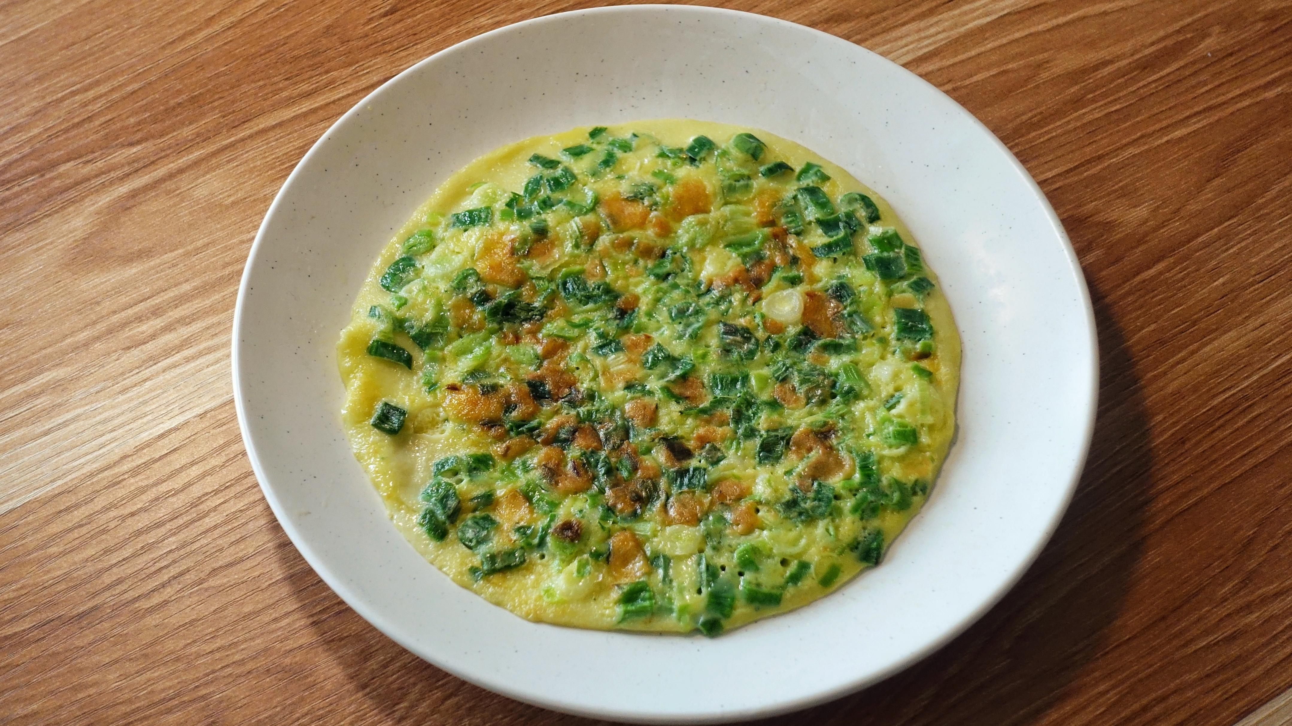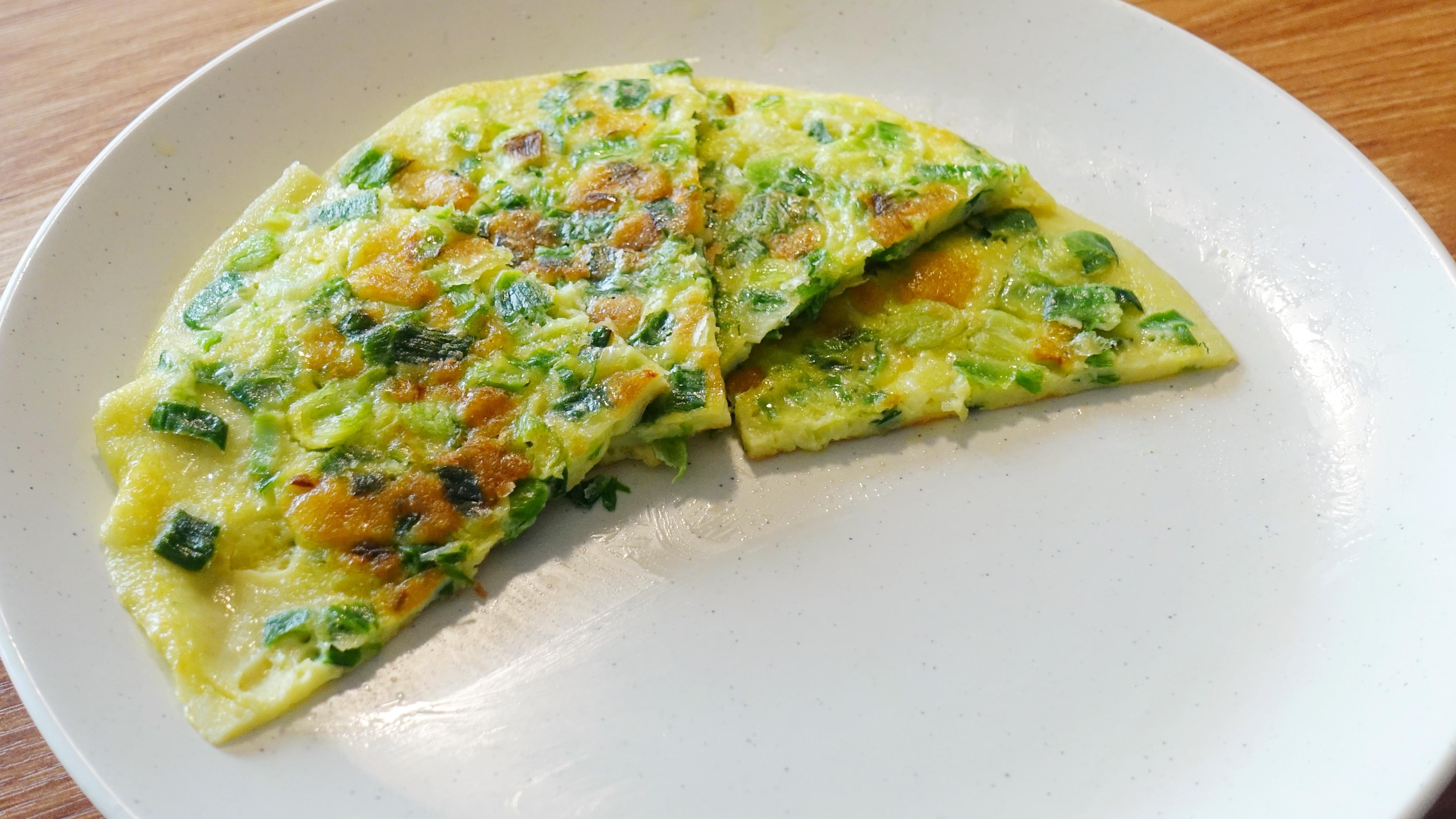 3、鍋中加油,油熱後倒入蛋液,小火煎至兩面成型,即可盛盤享用。