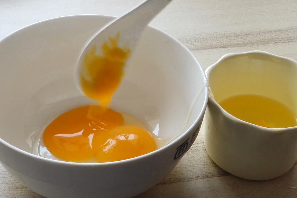 1、準備2個雞蛋,將蛋清和蛋黃分開裝入2個碗中;