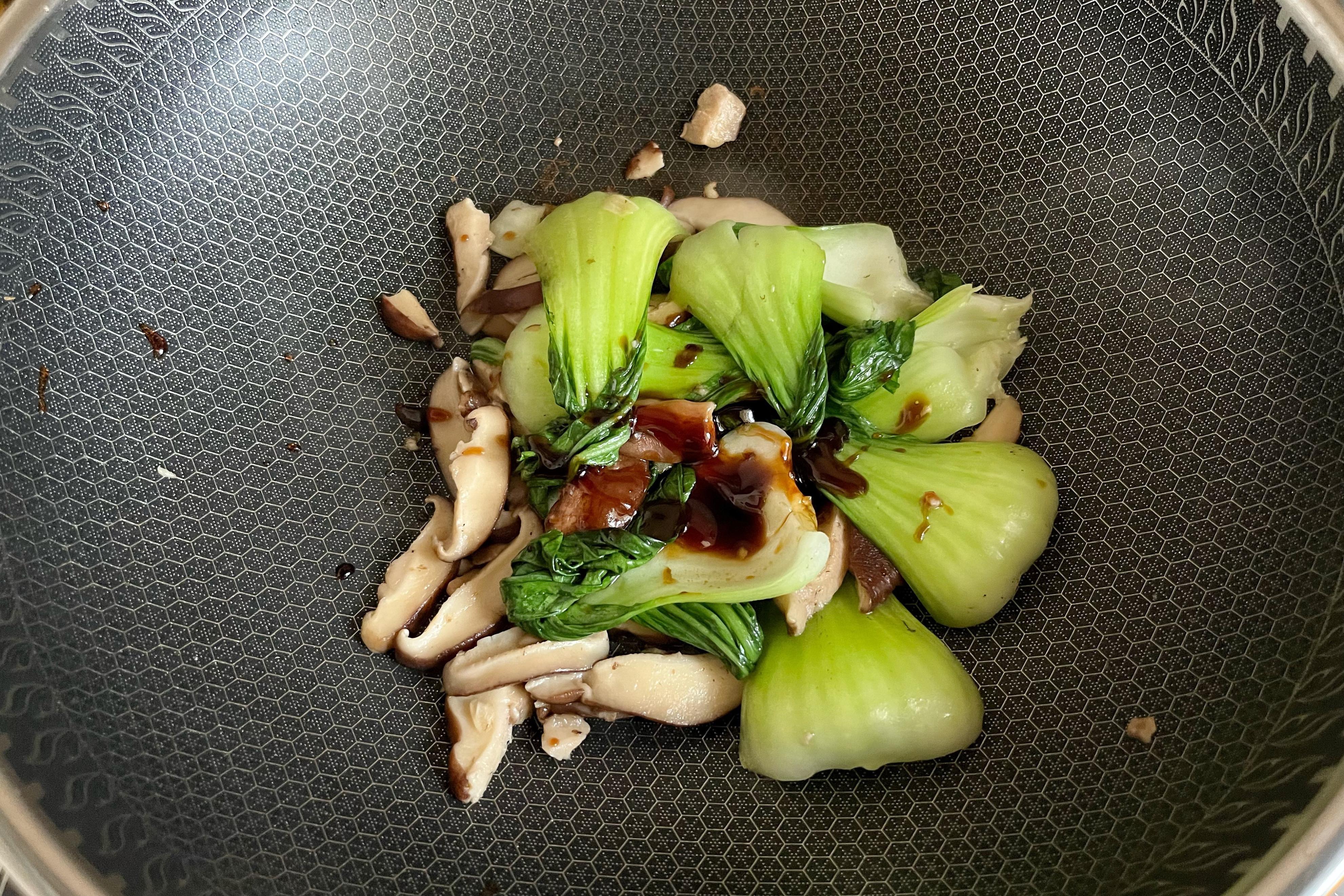 5、繼續大火翻炒3分鐘,加些生抽、蠔油,即可出鍋。