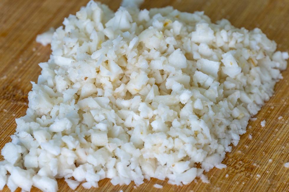 2、半根兒胡蘿蔔也打成小顆粒;4個馬蹄切成小丁。