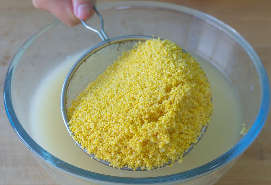 1、小米300克,加水提前泡一夜,然後倒出來瀝乾水分。