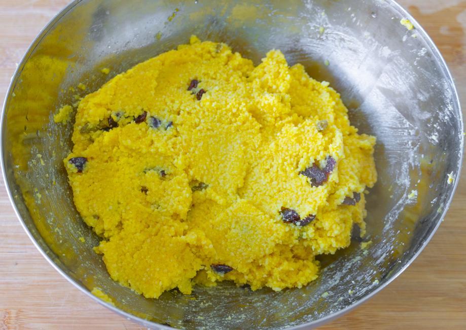 6、蒸好後把小米取出來,加30克葡萄乾,30克蔓越莓,50克白糖充分拌勻。
