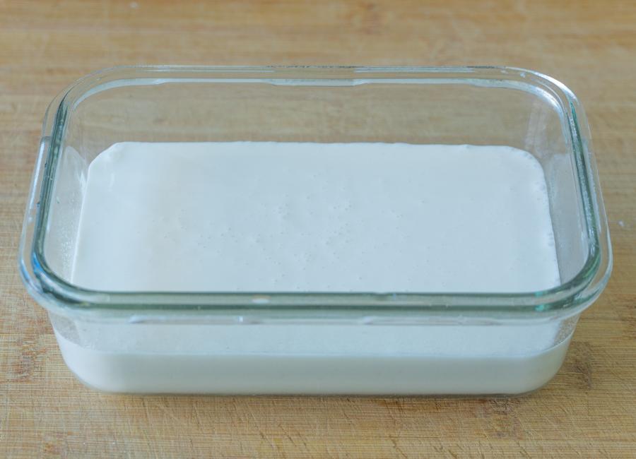 4、另一個碗里加150克糯米粉,30克玉米澱粉,30克白糖,再加200克清水攪拌成沒有面粉疙瘩的細膩麪糊就行,蓋上保鮮膜扎孔。