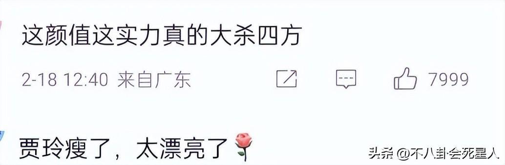 看到賈玲變瘦後的樣子,評論區一片誇讚,有人稱讚賈玲的意志力,她變瘦這麼多,其中的付出不言而喻,更多的人則是被賈玲變瘦下來的樣子美到了。
