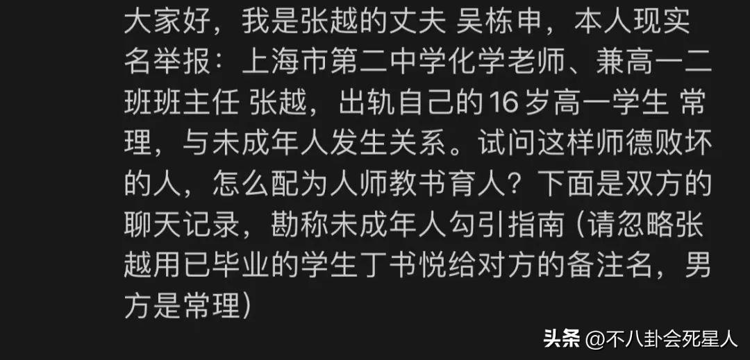 最近,網上一則社會新聞,登上了熱搜,引起了廣大網友的討論和關注。情況是這樣的,在2月17日,上海一個叫張越的女老師,被其老公實名舉報出軌。