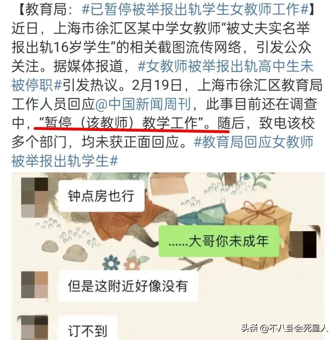 女教師被舉報出軌16歲男生後續:已被暫停工作,大量聊天記錄曝光