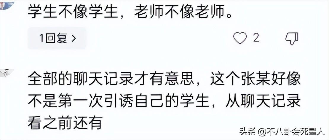看到這些聊天記錄,網友們紛紛表示大爲震驚,稱老師不像老師,學生不像學生,太敗壞社會風氣。更有人稱看了完整版聊天記錄,這位女教師,不是第一次引誘學生了,三觀炸裂。
