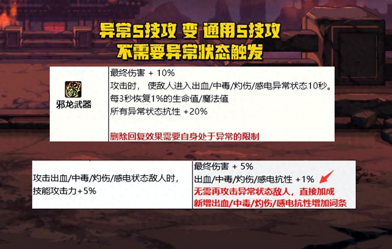 “邪龍武器”由於不需要提供異常狀態了,所以性價比已經變成很低了;