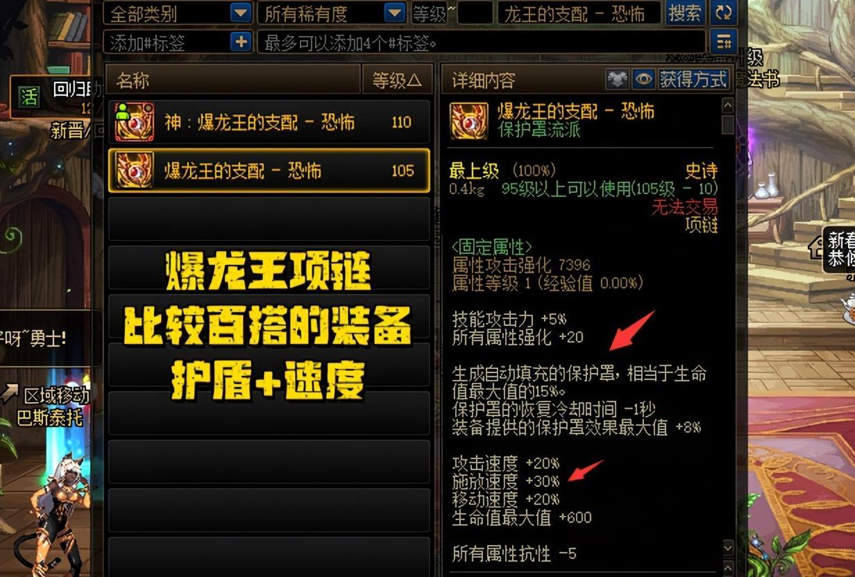 “爆龍王項鍊”本身的傷害實際上並不高,而之所以推薦“爆龍王項鍊”,原因在於:它既可以穩定觸發護盾,又帶來了20%速度加成。