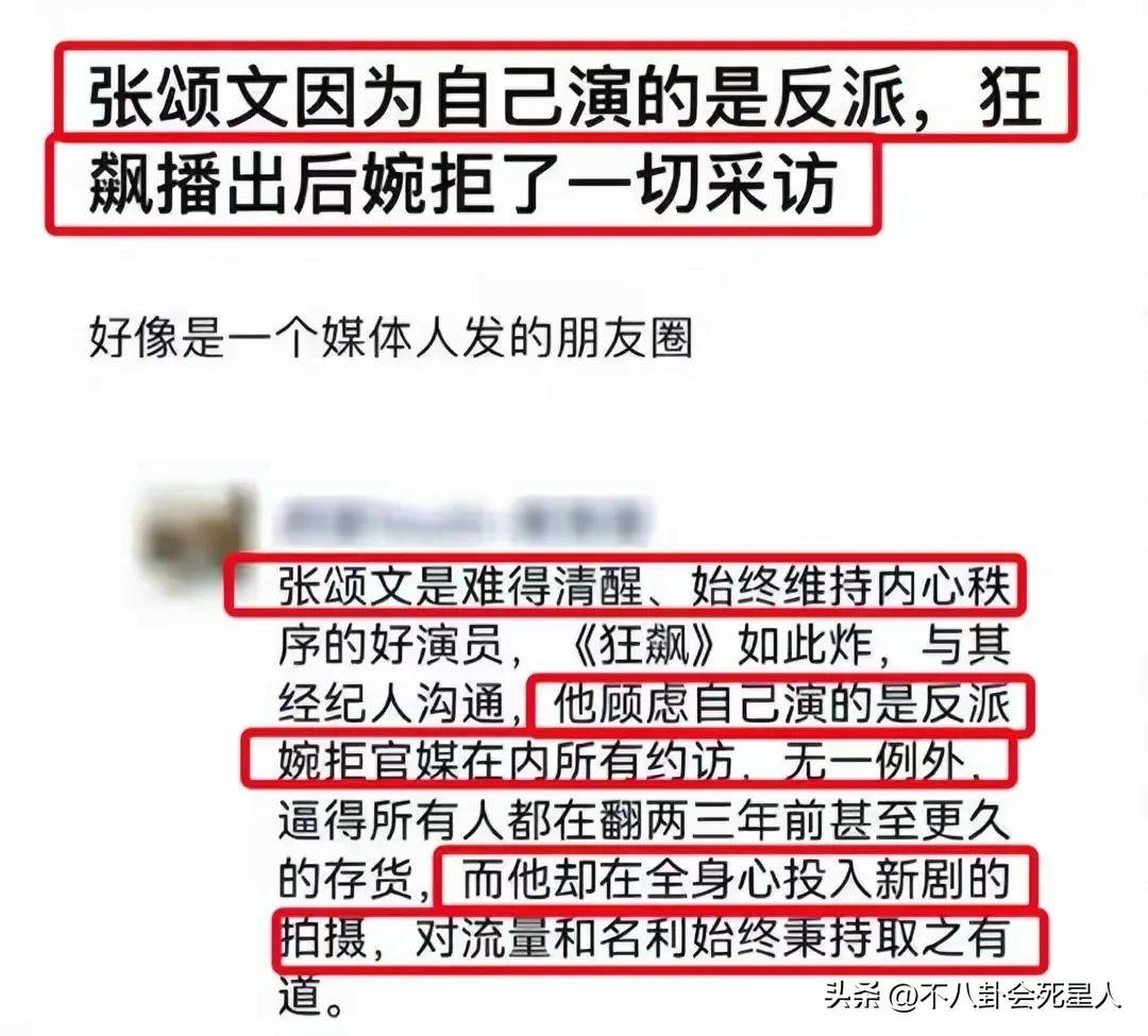 但也有另一種可能,就是張頌文通過《狂飆》喫到的紅利逐漸流失,他的熱度正在慢慢褪去,被“打回原形”了。