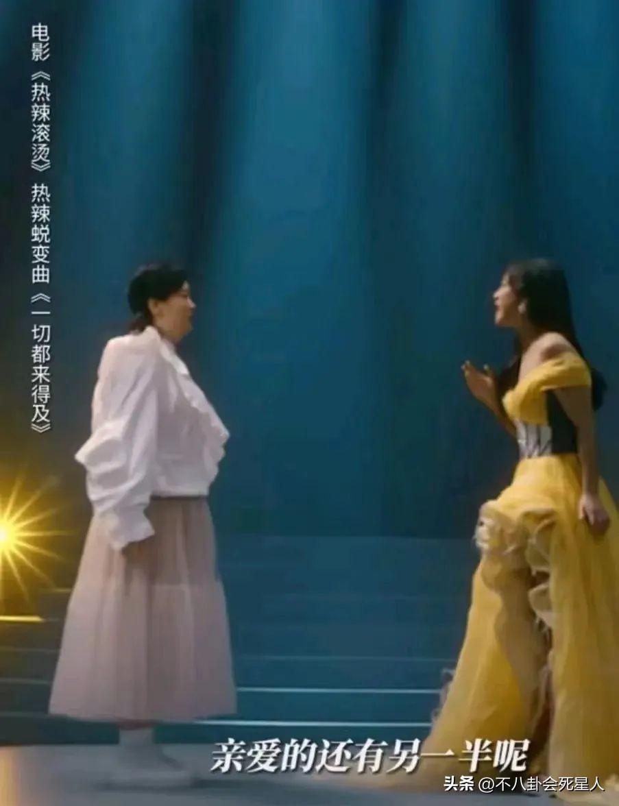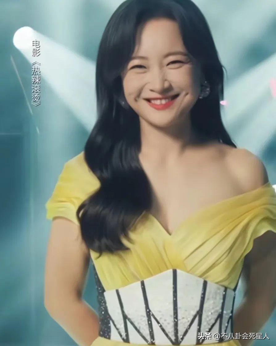 其中,變瘦後的賈玲留着大波浪,搭配黃色收腰開叉晚禮服,美出了新高度,腰細腿長、盈盈一握。