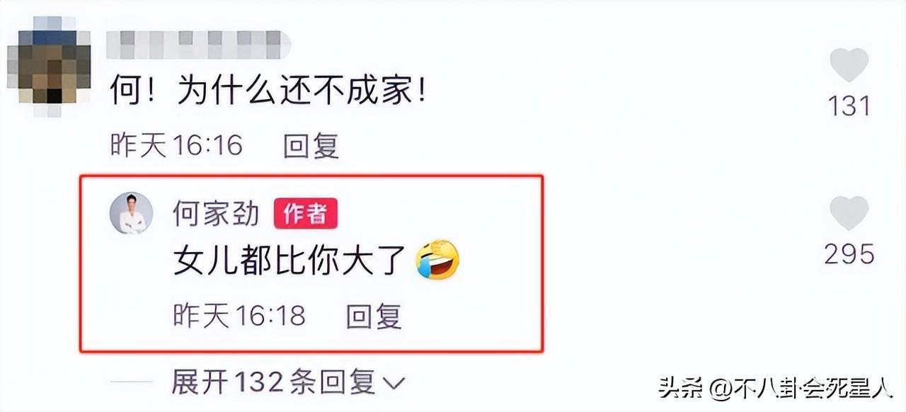 其實關於何家勁生女的消息並不是如今才傳出來,早在2022年,網上已經傳出他生女的消息。先是有網友在何家勁的社交平臺上問他爲什麼還不結婚,何家勁回覆,我的女兒都比你大了。