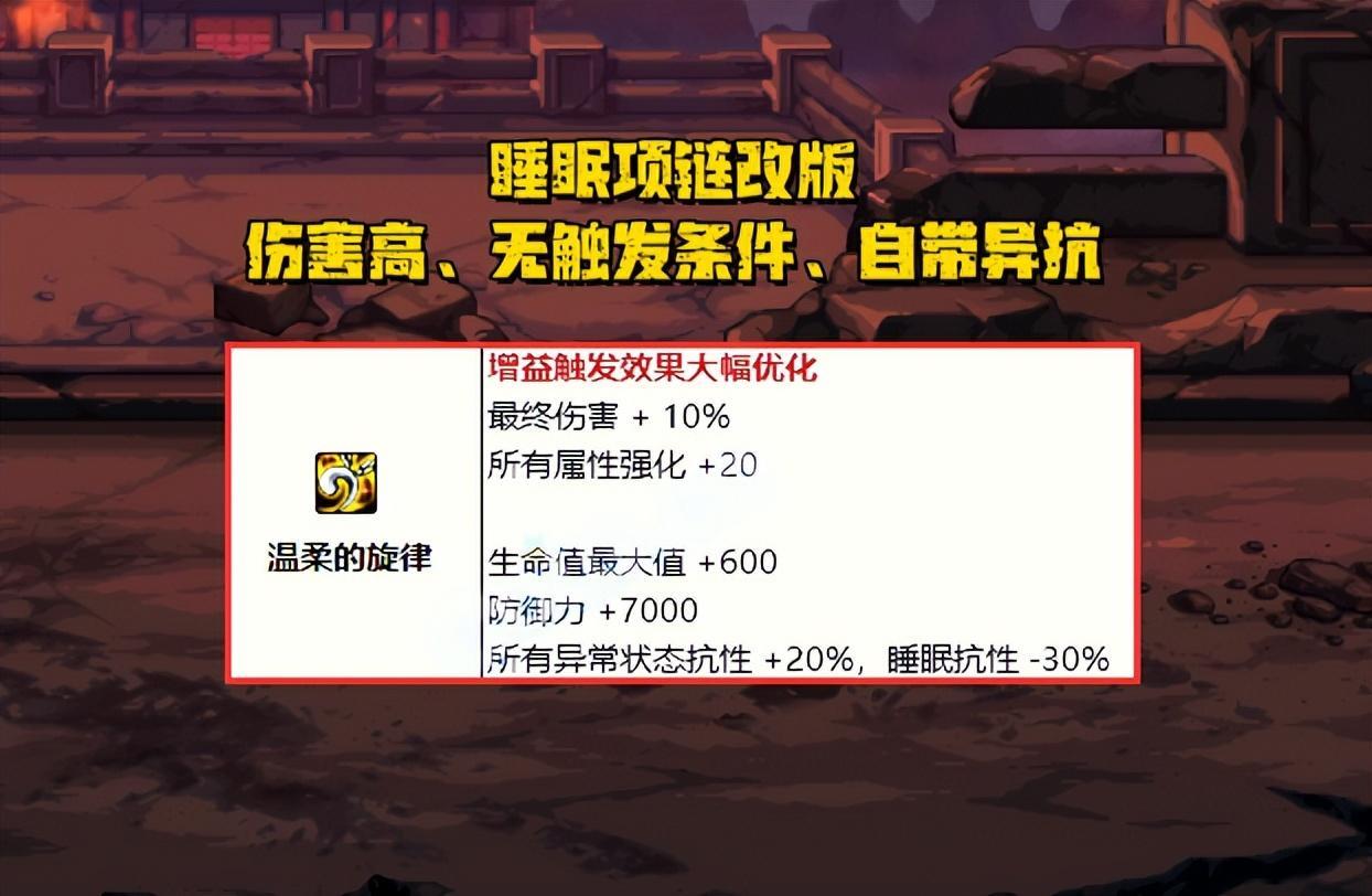 然後再來看我們的主角“睡眠項鍊”,改版後提升率在18%左右,且取消了觸發限制,任何職業流派均可搭配!
