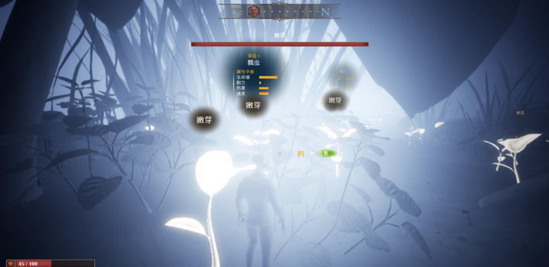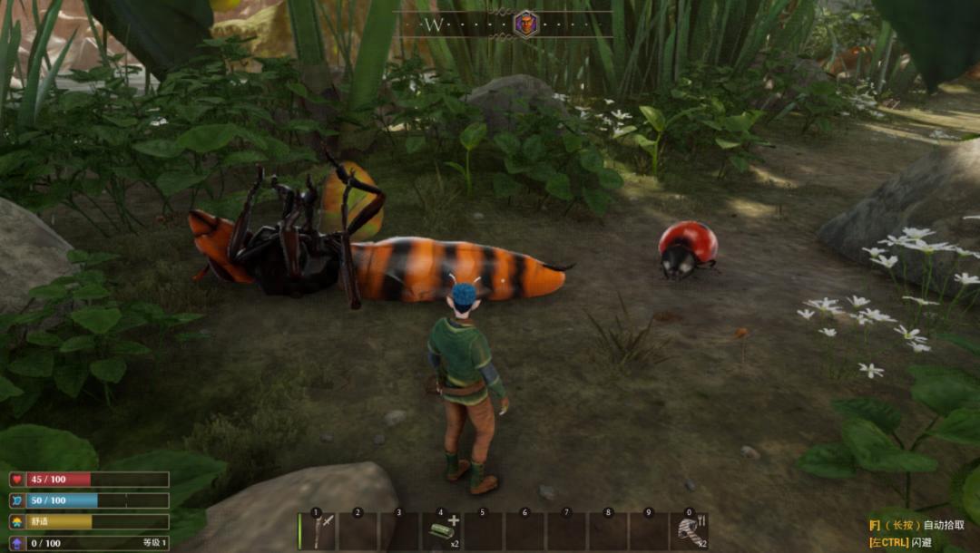 玩家操控的小精靈在前期,只需注重生命值和飲食,不用考慮更多的生存指標。在微觀世界到處探索的時候,只要手不賤就不會出事,更別提原始工具好做且好用,那些“入口即化”的食物全靠斧頭就能解決。