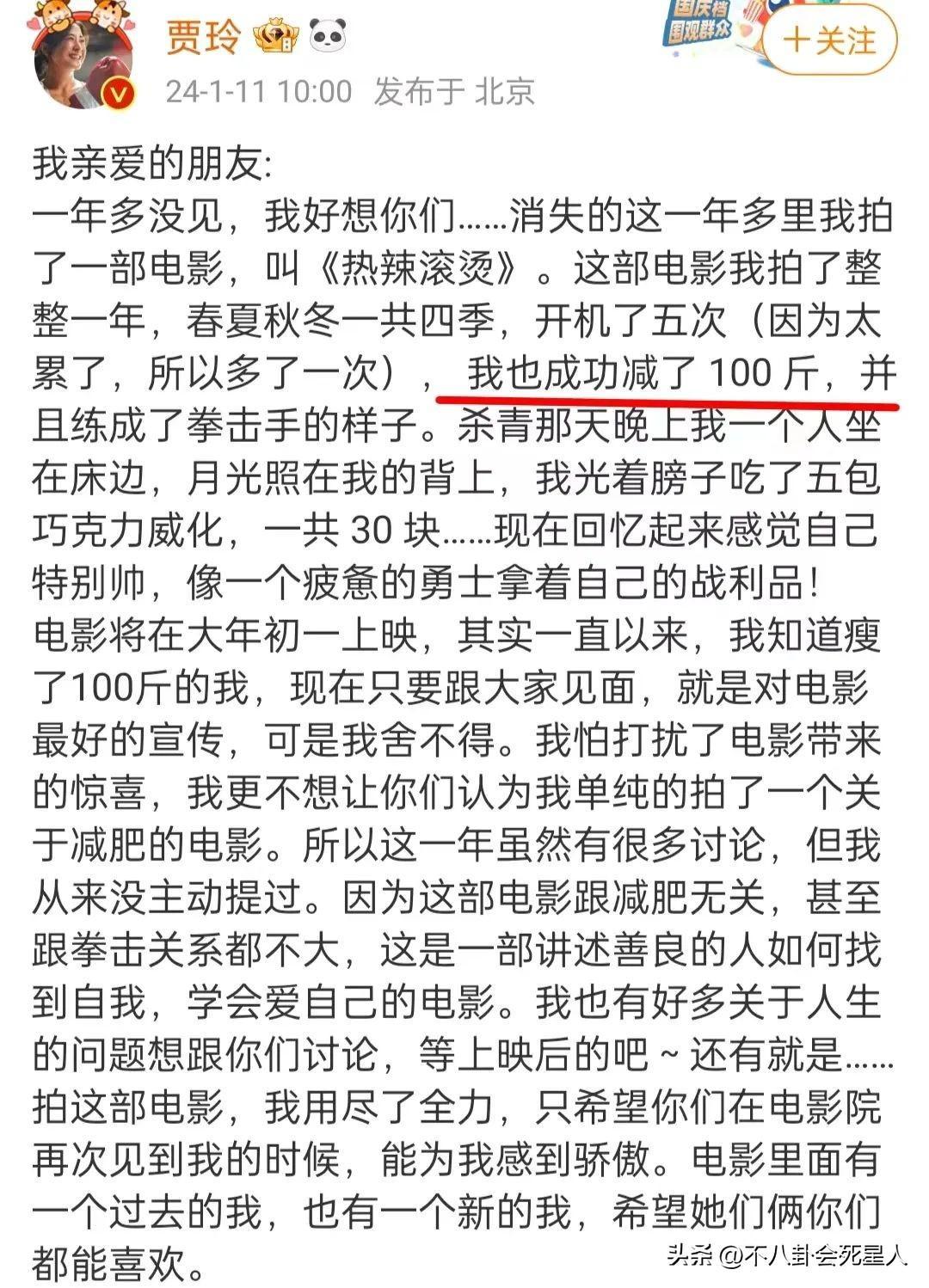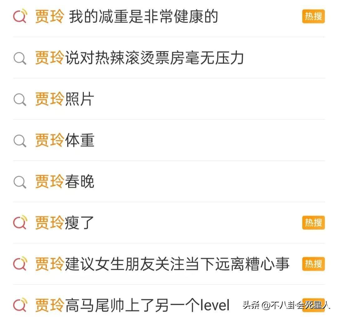 其實,在此之前,賈玲就發文坦言瘦了100斤,當時也是上了熱搜備受爭議。就賈玲減肥的這件事,各種花式上熱搜,每天都會有不同的熱搜詞條出現。