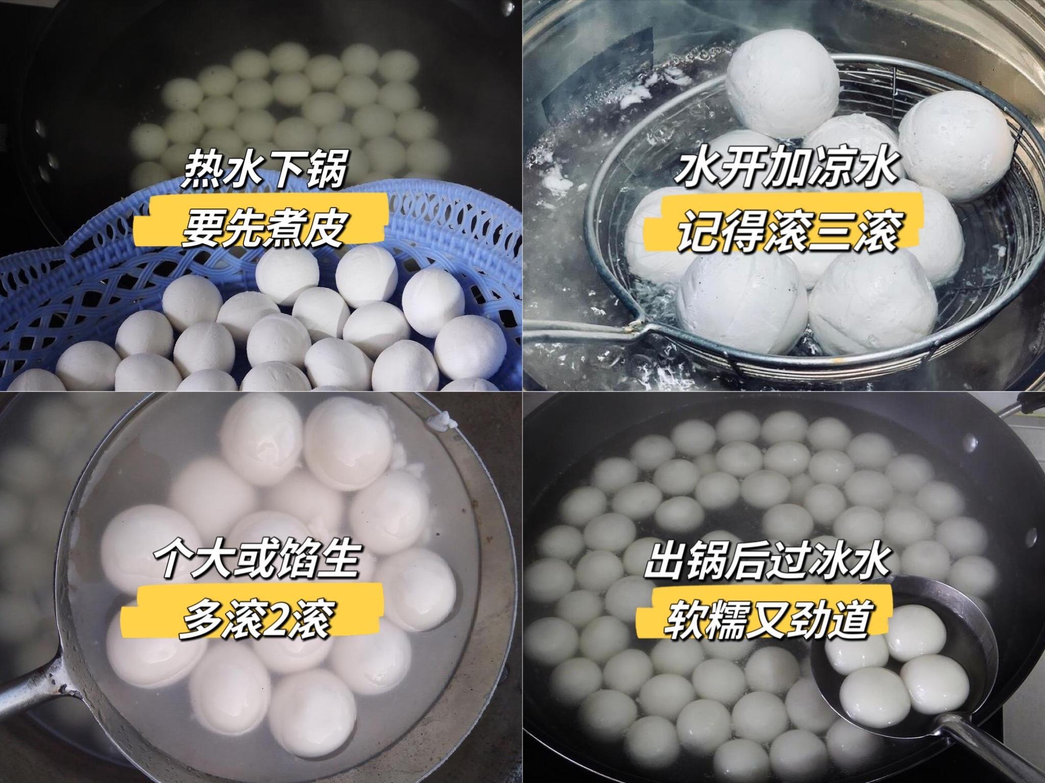 要想同時滿足上面2個條件,湯圓不夾生、不露餡,就要先掌握一個關鍵性祕訣:先煮皮,再煮餡,這也是一個大廚朋友專門叮囑我的。