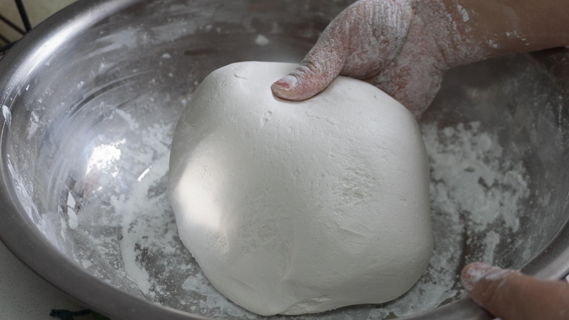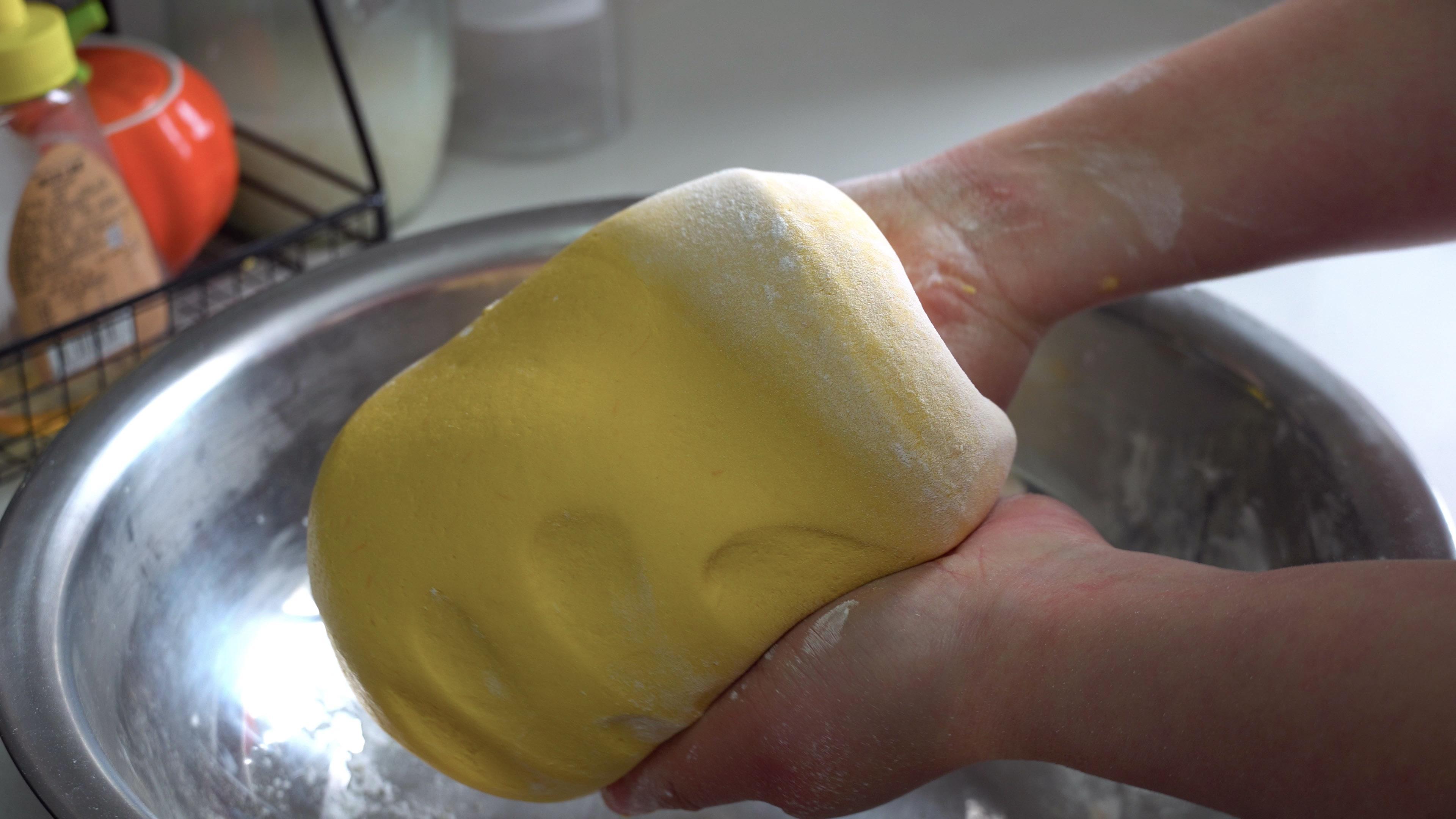 3、揉麪的時候想要不破皮,把少量麪糰兒煮熟後撈出來和麪團兒一起揉,是最簡單且最成功的辦法之一了。