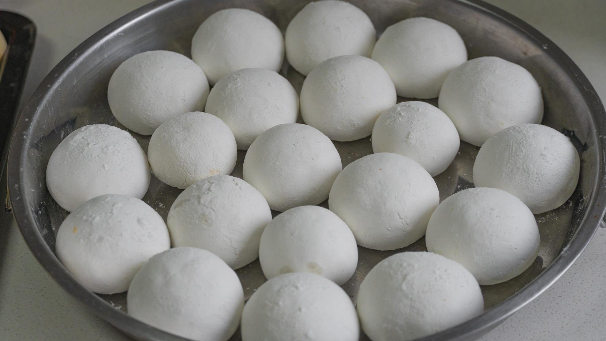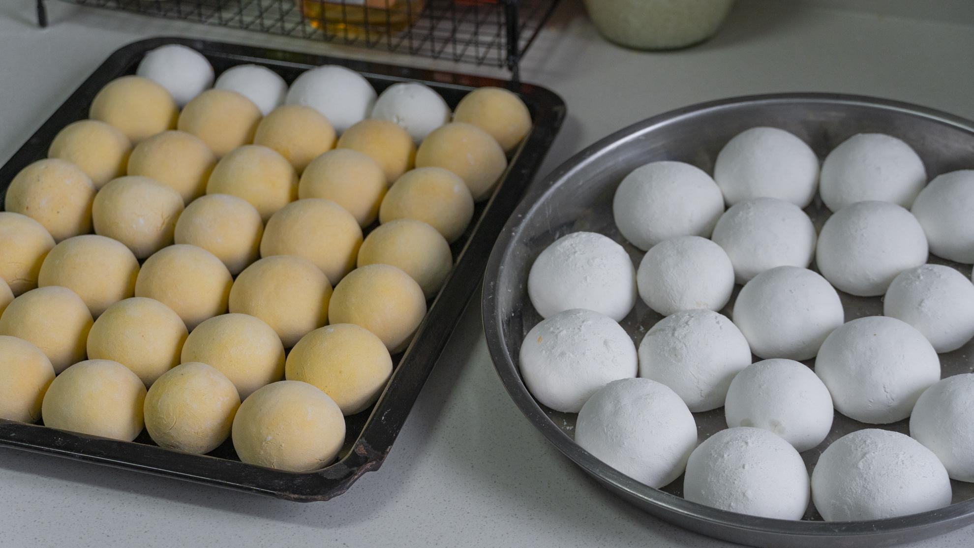 4、接着就是同樣的步驟分面劑子 、包餡兒、收圓,鹹口湯圓就做好了。