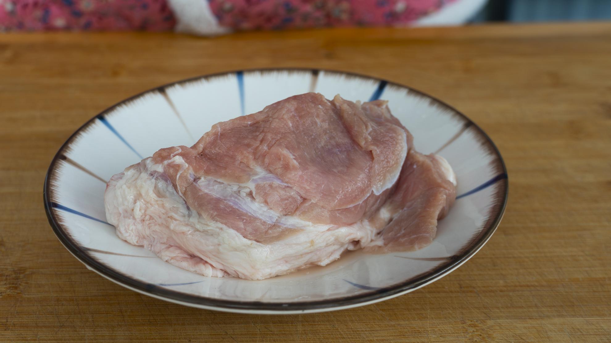 1、接着我們來做鹹口的,半斤豬肉清乾淨了切成小塊。