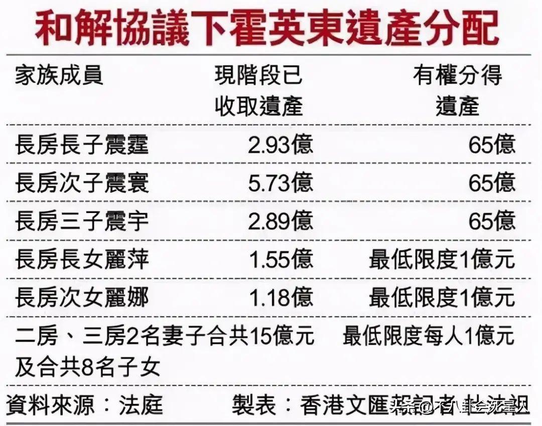 霍家當年曾經分過一次“家產”,長房一脈三兄弟每人分到了約65億元,而長房的兩位女兒也能每人分到最低1億元,當然,這還是霍家其中一部分資產而已。