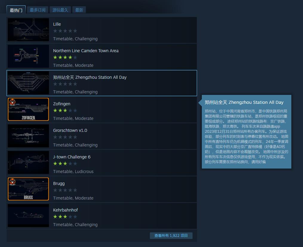 此外,《鐵路調度模擬器》還有着自由的創意工坊。這裏有一羣共同愛好的玩家,與他們拓展鐵路的地圖,分享調度經驗,迎接全新挑戰;你甚至還能在作品地圖中找到國內城市的是實況模擬,既然機會已到,不妨體驗一下多如織網般鐵路線的工作處理模式。