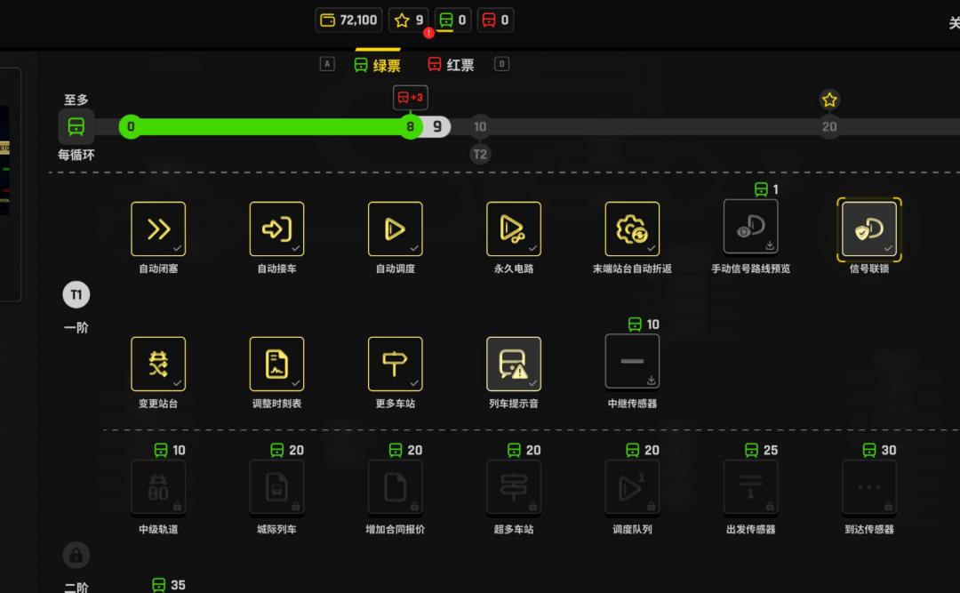 每完成一次“完美調度”,玩家便會獲得一張列車綠票,當綠票積攢到一定程度後,玩家可在相應界面升級鐵路系統建設,更有效的幫助自己調度資源。