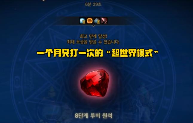 所以這樣看的話,“超世界模式”同樣也是一個超高難度的副本,而且和幽暗島一樣,它也是具有階段獎勵劃分的,比如大佬們傷害高、手法好,那就通關8階段;